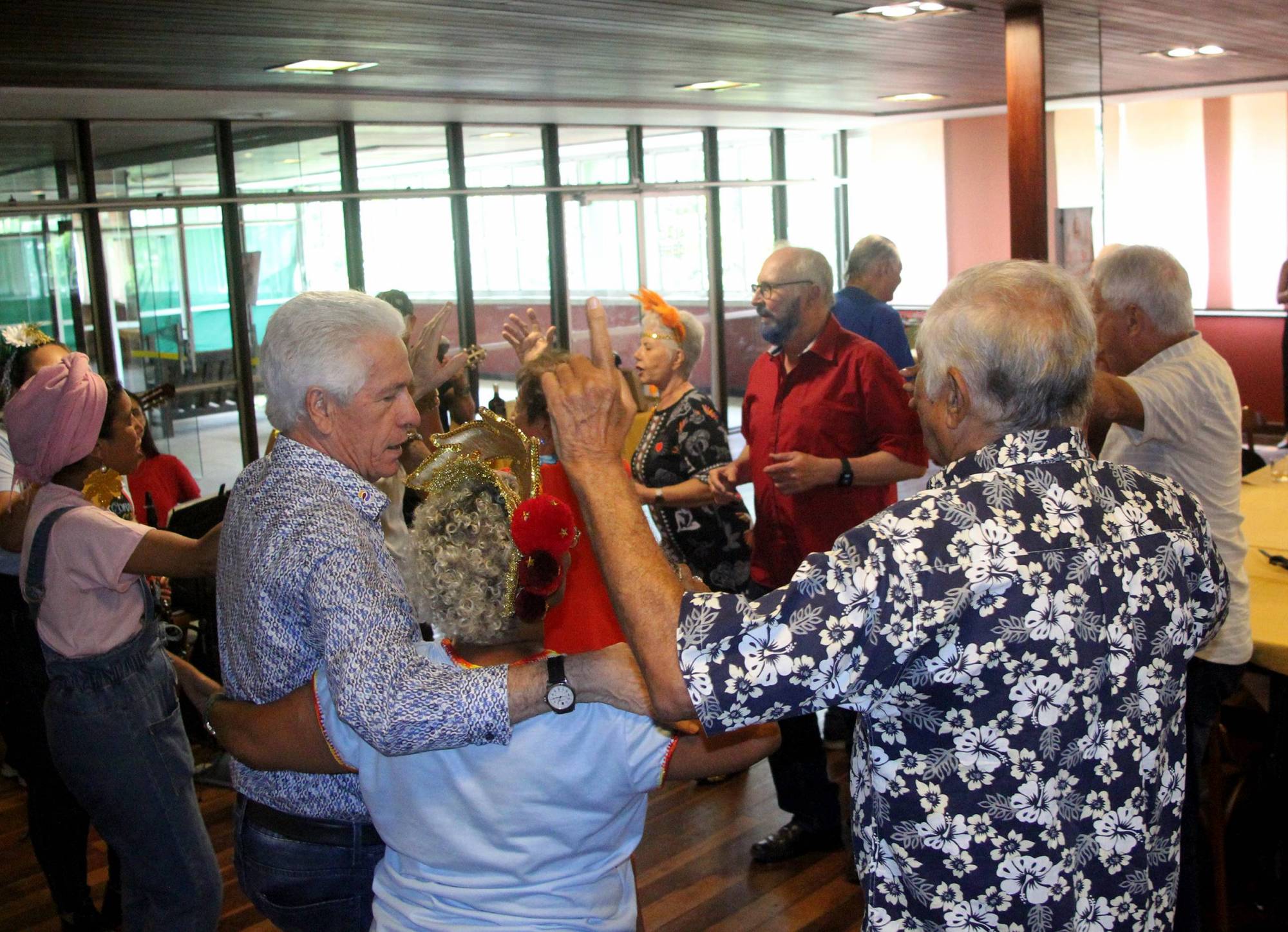 O clima de camaradagem era evidente. Os companheiros dançavam e interagiam entre si, fortalecendo os laços e criando memórias divertidas. A alegria e a descontração tomaram conta de todos, em uma atmosfera de leveza e diversão.
