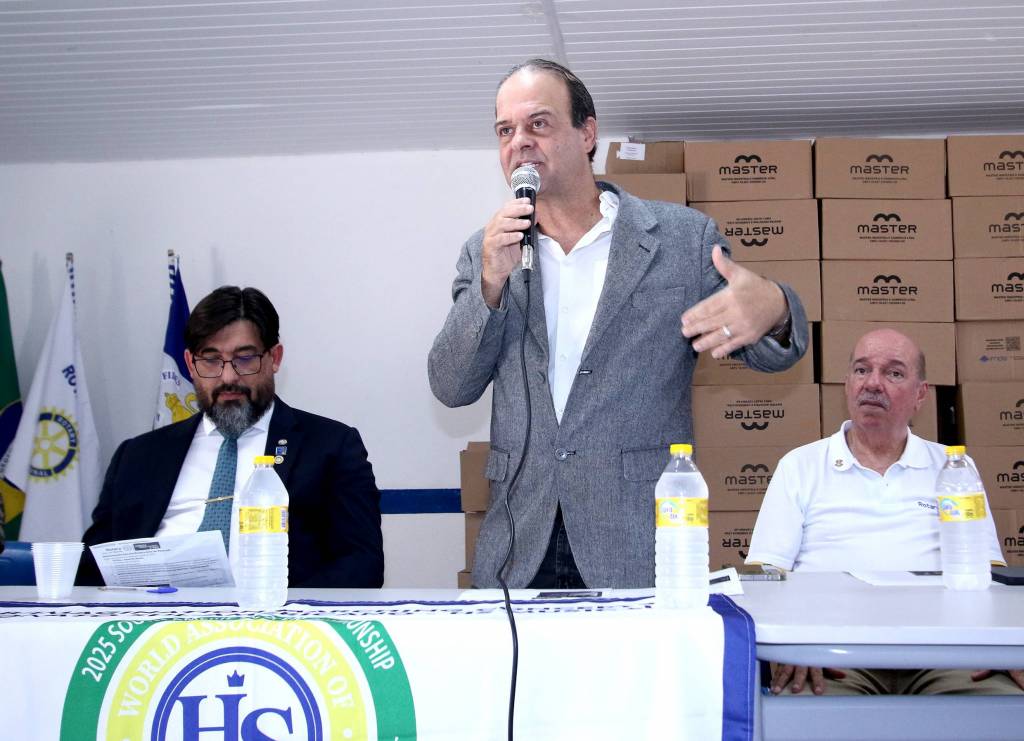 Na sequência, o governador André Castelo Branco fez uso da palavra, parabenizando o clube pelo trabalho desenvolvido, destacando a importância da continuidade de ações voltadas à inclusão, educação e apoio social. André deixou uma mensagem de esperança e inspiração, reforçando o papel transformador do Rotary na sociedade.